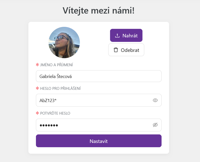 Vytvořte účet - nezapomeňte na bezpečné heslo a klidně si přidejte fotku ;)